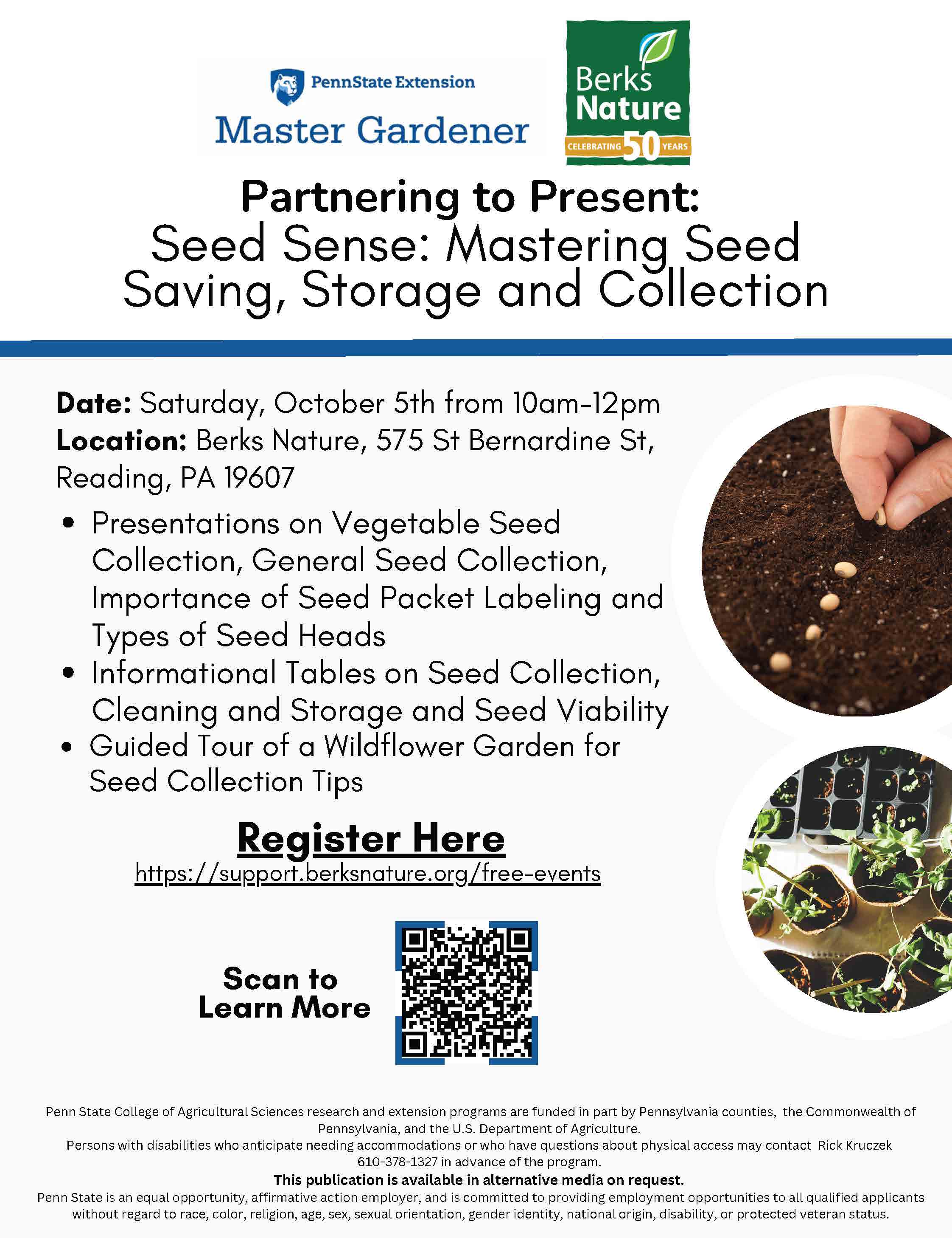 Join Berks Nature and our partner, Master Gardeners, for a seed educational event!